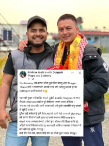 Krishna Joshi wrote on social media Facebook: “Why didn’t you speak the truth about the controversy, Durges Thapa? Did you not speak even when you were in front of the camera or was it cut in the editing?”
