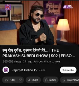 Saying that Durgesh Thapa tried to hide the truth about his relationship with Pal Shah on Prakash Subedi’s show Rajat Pat, Pal Shah’s former manager Krishna Joshi says: Durgesh Thapa did not tell the truth about the rape case on Prakash Subedi’s show! Now I will reveal one by one the secrets of my own scandal.